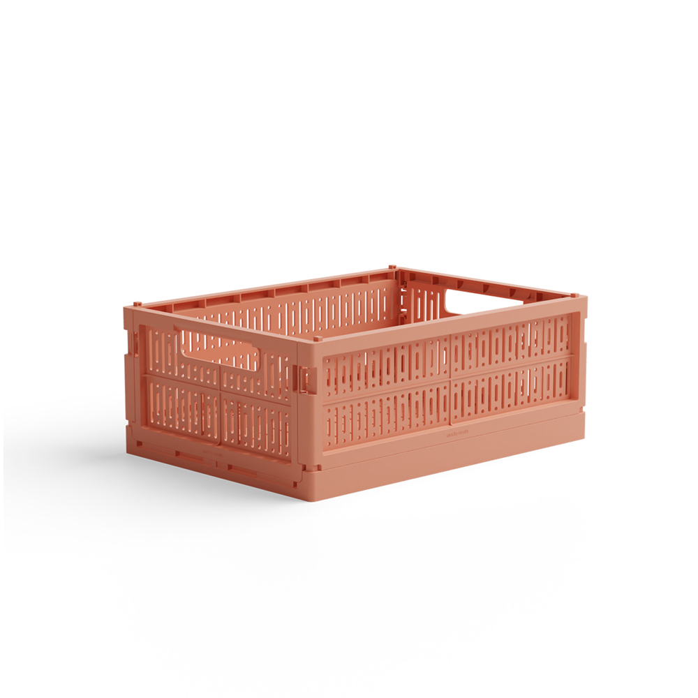 Midi kasse – peachy (One size) Et bæredygtigt valg – lækre sammenklappelige kasser lavet af 100% genanvendt plastik – helt uden brug af virgin plastik. Du kan nemt stable de forskellige størrelser ovenpå hinanden. Eksempelvis passer to mini kasser helt pe