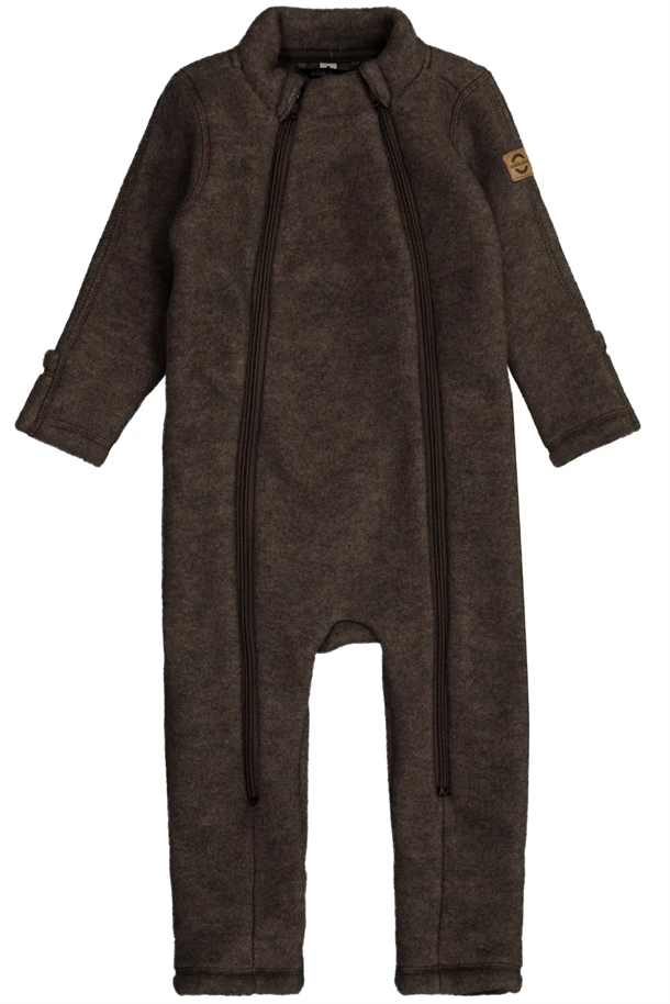 Mikk-Line Ulddragt – Dobbelt lynlås & ombuk – Dark Brown Melange – Mikk-Line