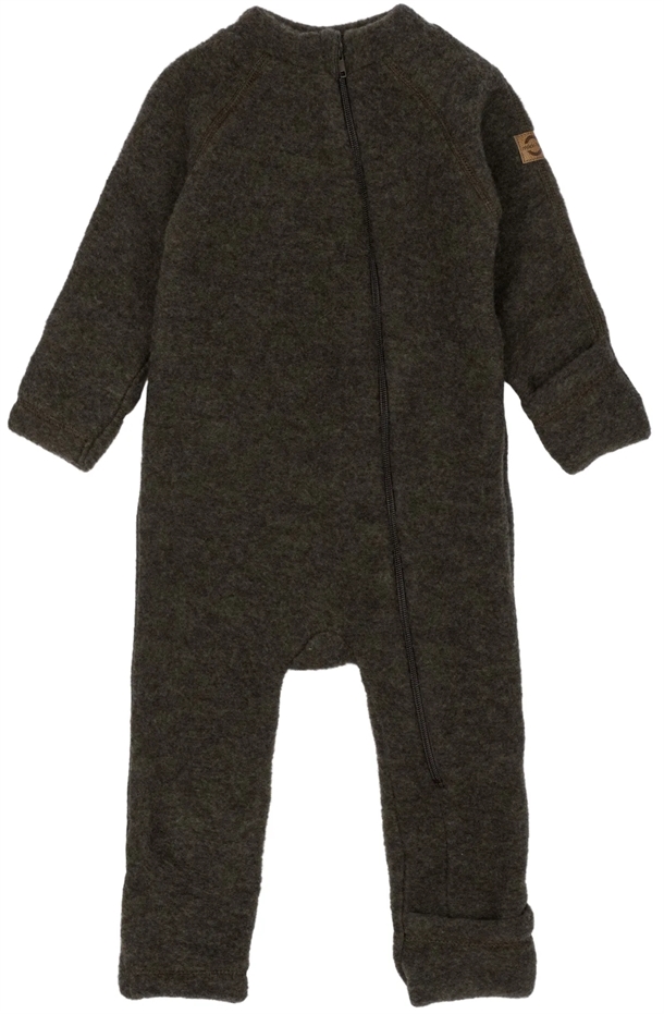Mikk-Line Ulddragt m/lynlås & ombuk – Dark Brown Melange – Mikk-Line