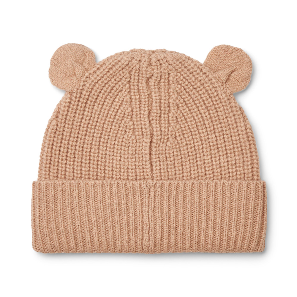Miller uld hue (9-12 mdr) – Blød, uldstrikket enkeltlags hue – Kanten kan rulles op eller ned for at få det ønskede look – Bamseøre detaljer Tuscany rose Miller