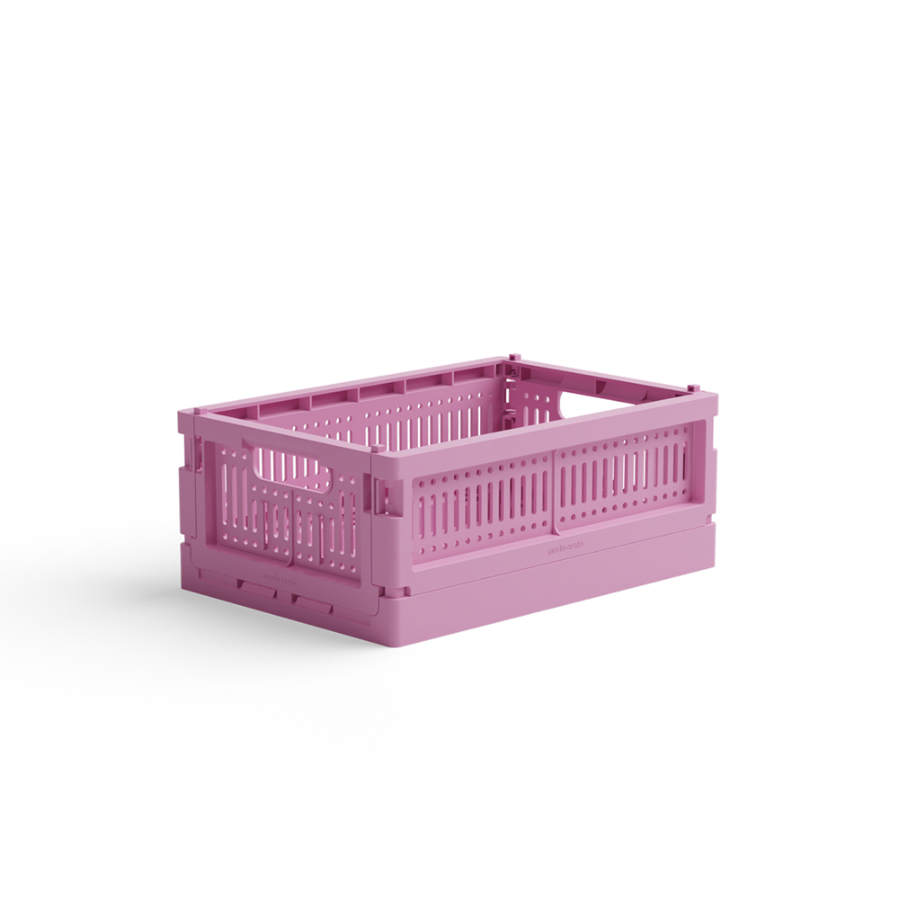 Mini kasse – soft fuschia (One size) Et bæredygtigt valg – lækre sammenklappelige kasser lavet af 100% genanvendt plastik – helt uden brug af virgin plastik. Du kan nemt stable de forskellige størrelser ovenpå hinanden. Eksempelvis passer to mini kasser h