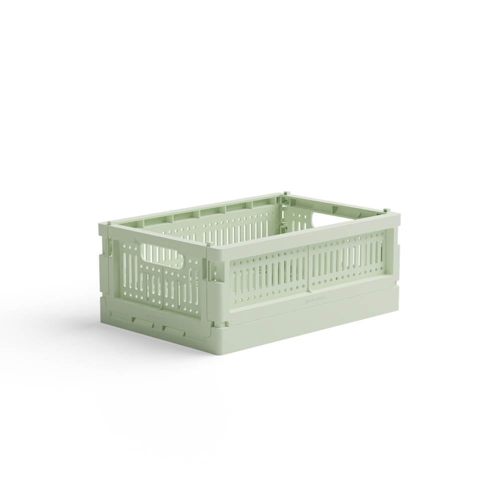 Mini kasse – spring green (One size) Et bæredygtigt valg – lækre sammenklappelige kasser lavet af 100% genanvendt plastik – helt uden brug af virgin plastik. Du kan nemt stable de forskellige størrelser ovenpå hinanden. Eksempelvis passer to mini kasser h