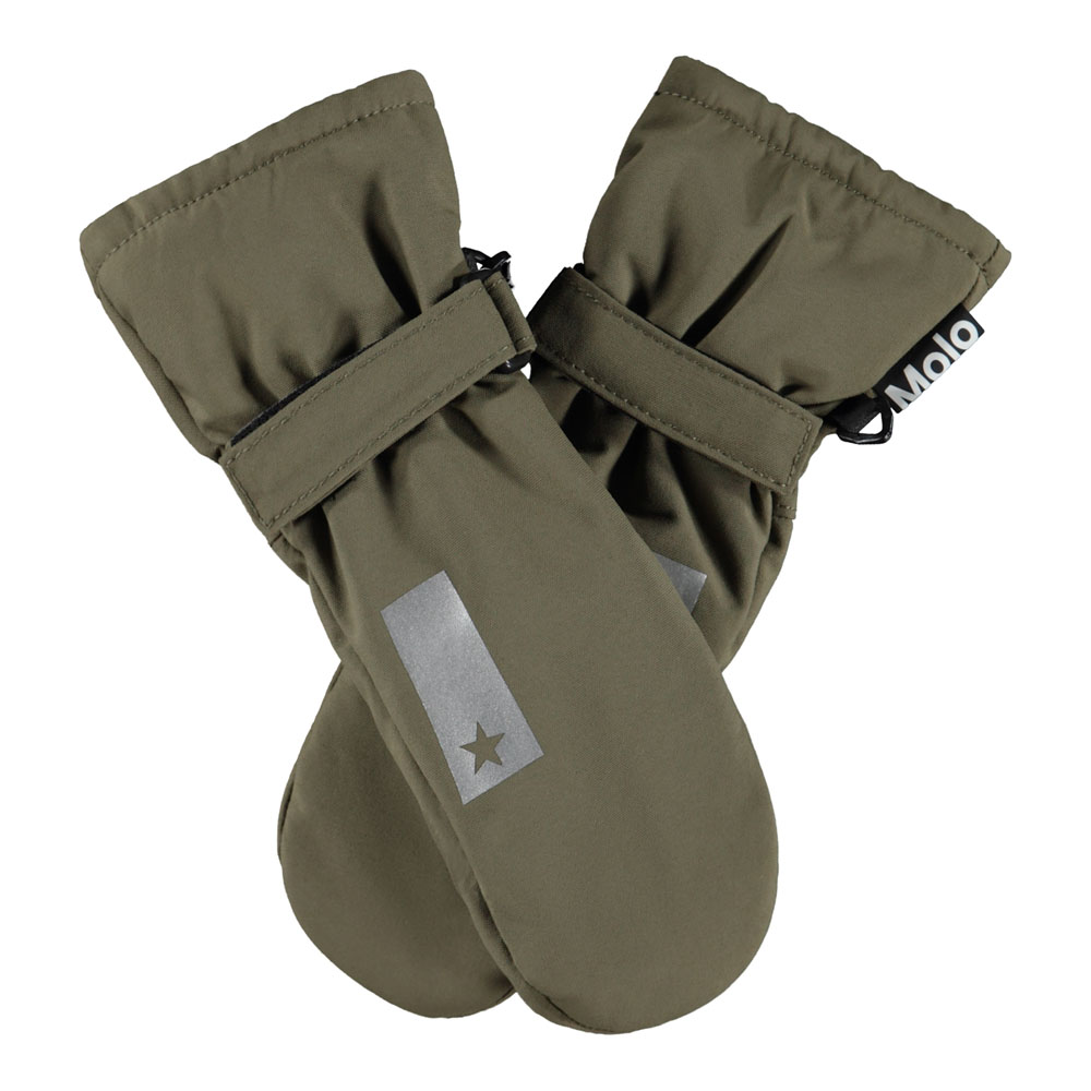 Mitzy luffer (9-12 mdr) – Vind og vandtætte luffer med høj åndbarhed – Justerbare velcro ved håndleddet Bark Green Mitzy