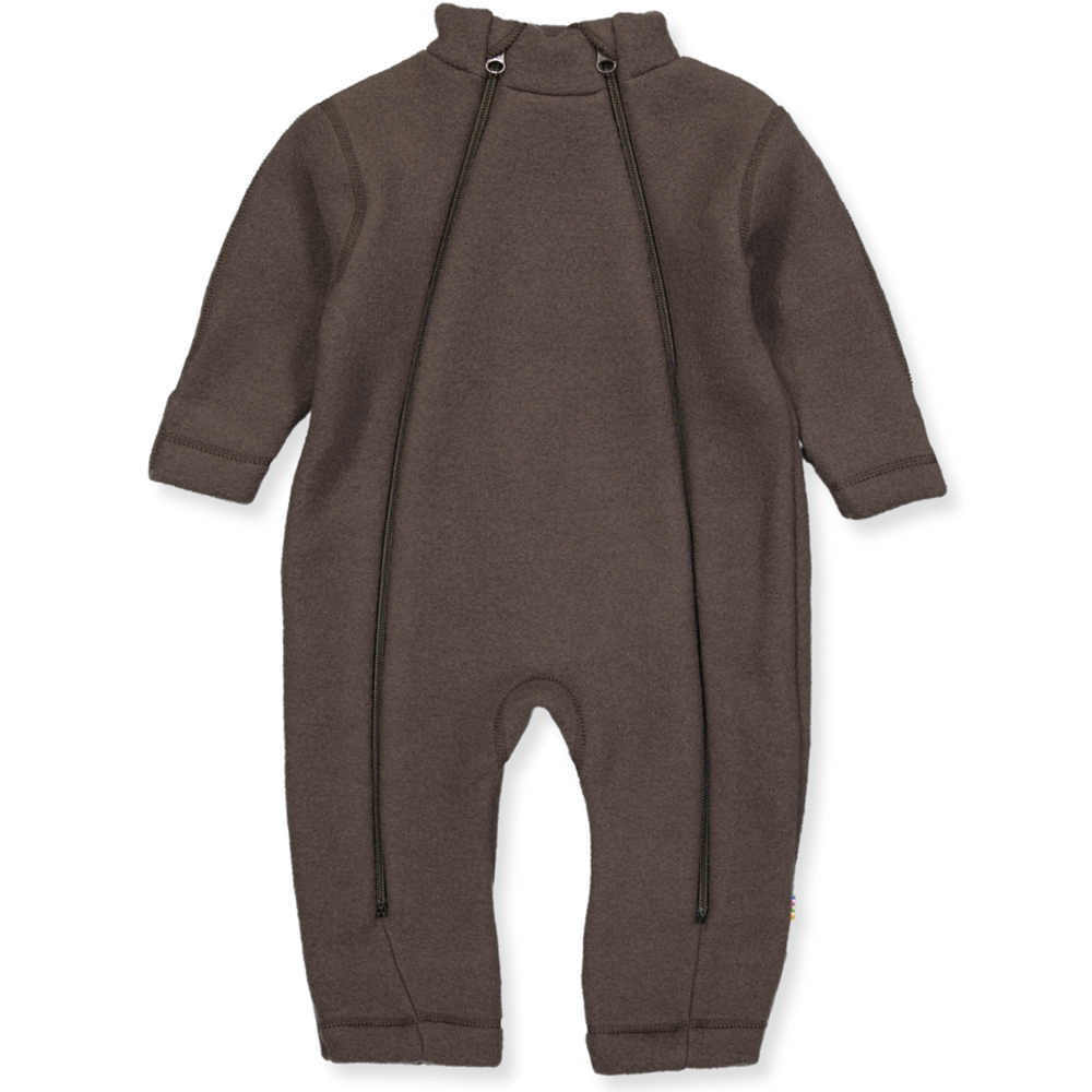 Mørkebrun merino uld fleecedragt (60 cm) – lukkes med to lynlåse – et lag uldfleece Dark bark