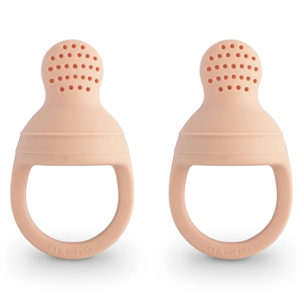 Dit barn kan smage mange forskellige ting fra starten og samtidig få alle de gode vitaminer og mineraler fra maden. Fyld Mushie food feederen med fx grønsager, frugt eller mos og grød. Udvælg naturlig