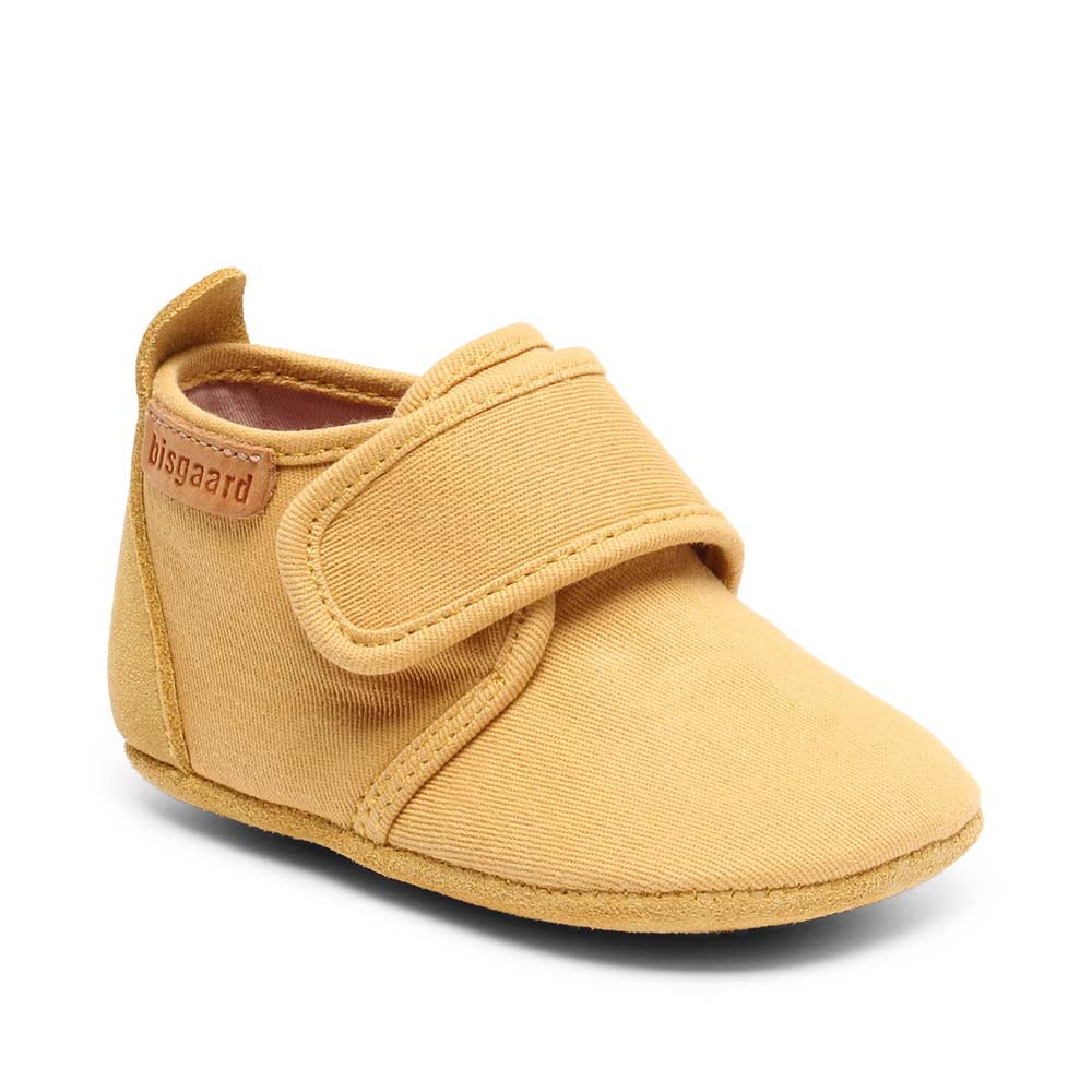 Mustard hjemmesko (18) Hjemmesko med velcrolukning og en blød sål af ruskind og skridsikker gummi, der giver den optimale støtte. Hjemmeskoen er produceret i bomuld, der er lukket rundt om foden og samtidig giver foden plads til at vokse. Bisgaard eco car