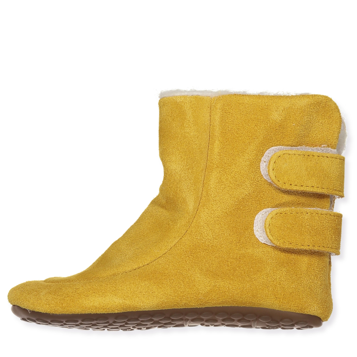 Mustard uld hjemmesko (22) Mustard Suede Beginners Wool Velcro Booty