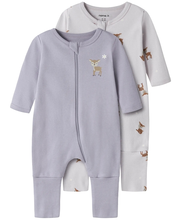 Gør natten enklere for både baby og forældre. Name It Natdragt i 2-pak kombinerer praktisk funktionalitet med en enkel, rolig farvepalet (Lilac Marble og Lavender Gray), så det er nemt at skifte og få barnet hurtigt i søvn igen.