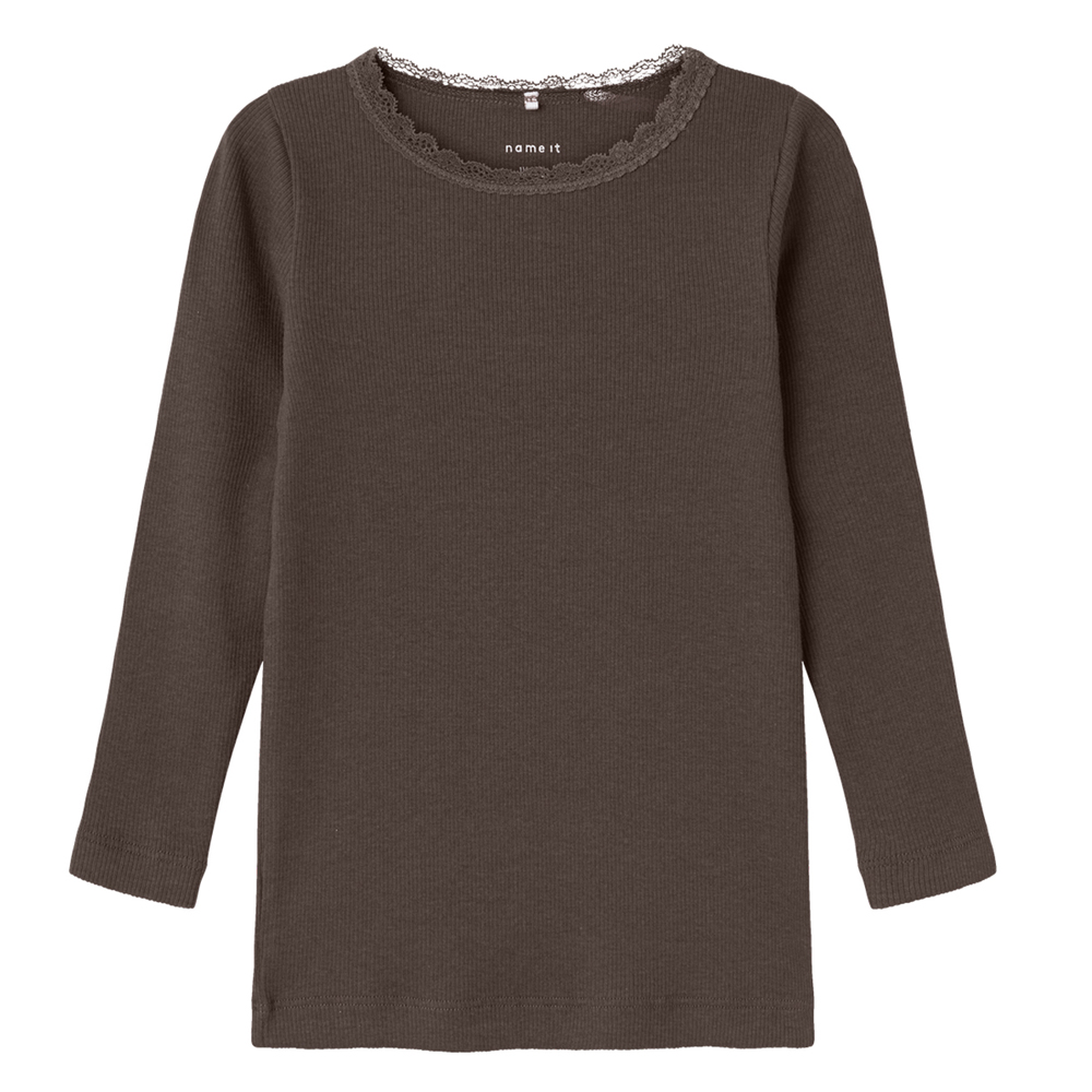 NMFReese rib bluse (4 år/104 cm) Chocolate Brown Nmfreese