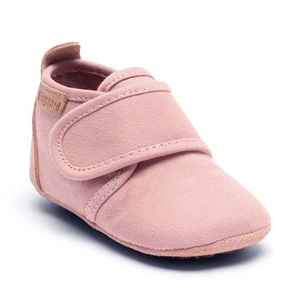 Nude hjemmesko (18) Hjemmesko med velcrolukning og en blød sål af ruskind og skridsikker gummi, der giver den optimale støtte. Hjemmeskoen er produceret i bomuld, der er lukket rundt om foden og samtidig giver foden plads til at vokse. Bisgaard eco care F