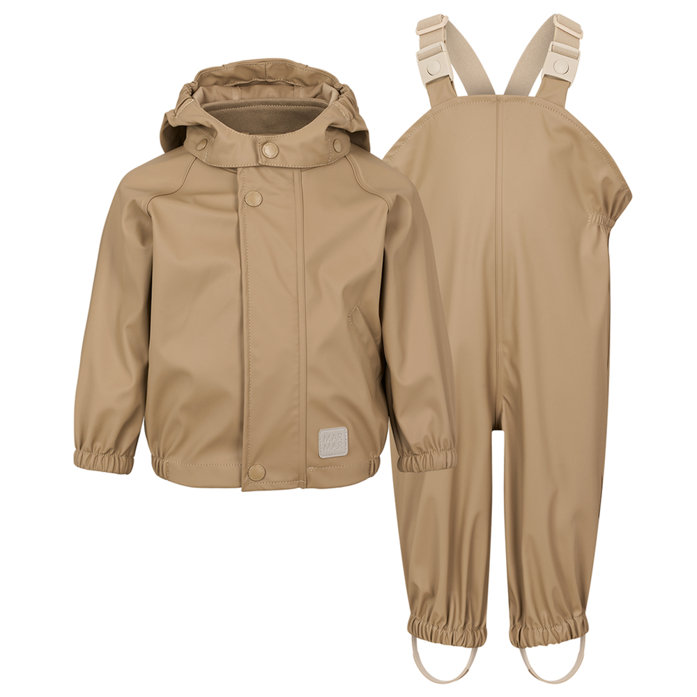 Oddy regntøj (18 mdr/86 cm) – Regnbukser med seler og elastik i siderne – Jakken har en lomme foran og lynlåslukning med trykknapper Sepia Brown Oddy