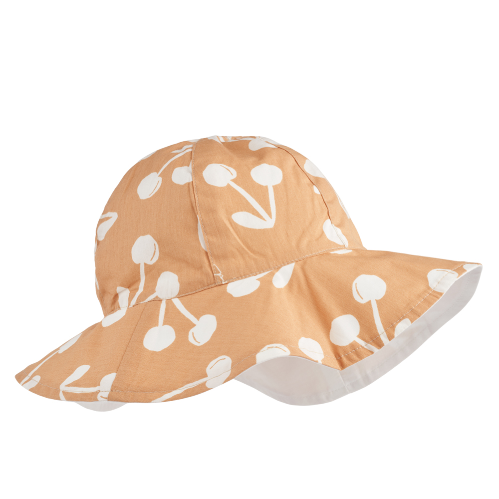 Organic Amelia vendbar solhat (1-2 år) – Elastik bagpå sikrer, at solhatten sidder behageligt på hovedet – Beskytter både nakke og ansigt Cherry blossom/Light apricot Amelia
