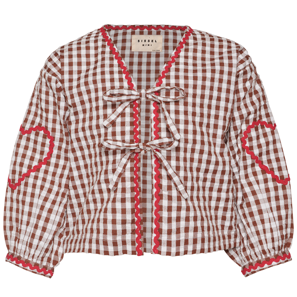 Organic Astrid cardigan (3-4 år) – Lukkes med bindebånd foran Brown Checks Astrid