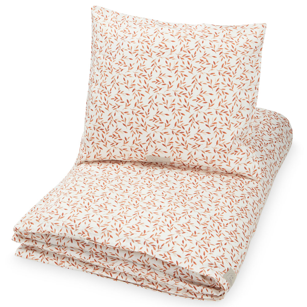 Organic caramel leaves sengetøj (BABY) Mål: Baby Dynebetræk 100 x 70 cm. pudebetræk 40 x 45 cm. CARAMEL LEAVES