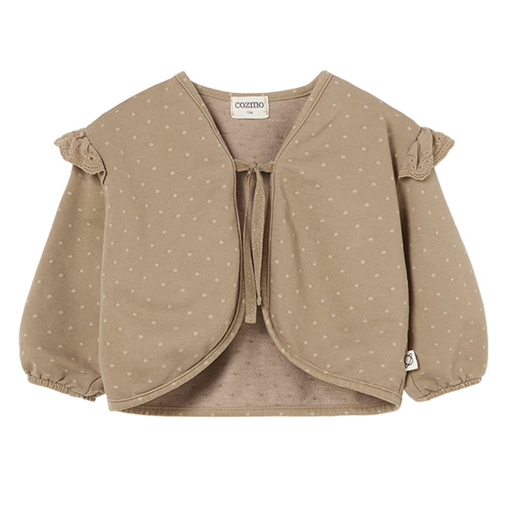 Organic cardigan (2 år/92 cm) – Lukkes med bindebånd foran coffee