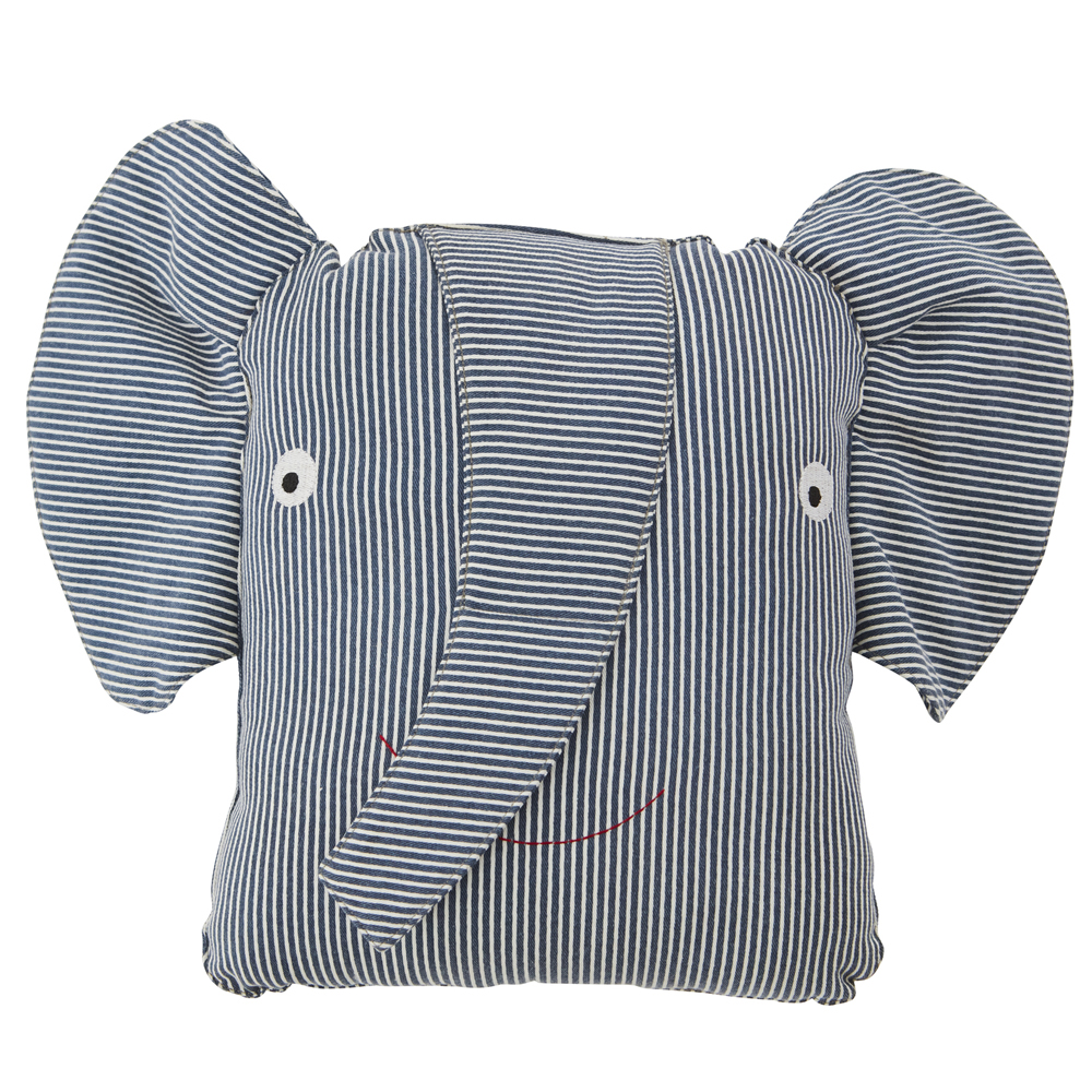 Organic Erik Elephant pude (One size) Sødeste elefantpude fra OyOy i mælkedrenge stribet stof. Elefantens snabel kan vippes op – og den har de sødeste ører. Man kan kun elske den pude! 32×38 cm Blue Erik Elephant