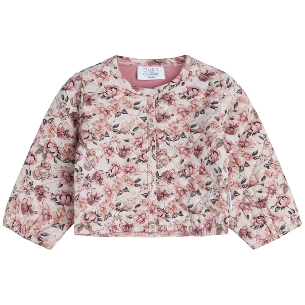 Organic Eva jakke (9 mdr/74 cm) – Quiltet bomulds jakke/cardigan med bomuldsfoer og elastik for neden og i ærmer – Lukkes med trykknapper Wheat melange Eva