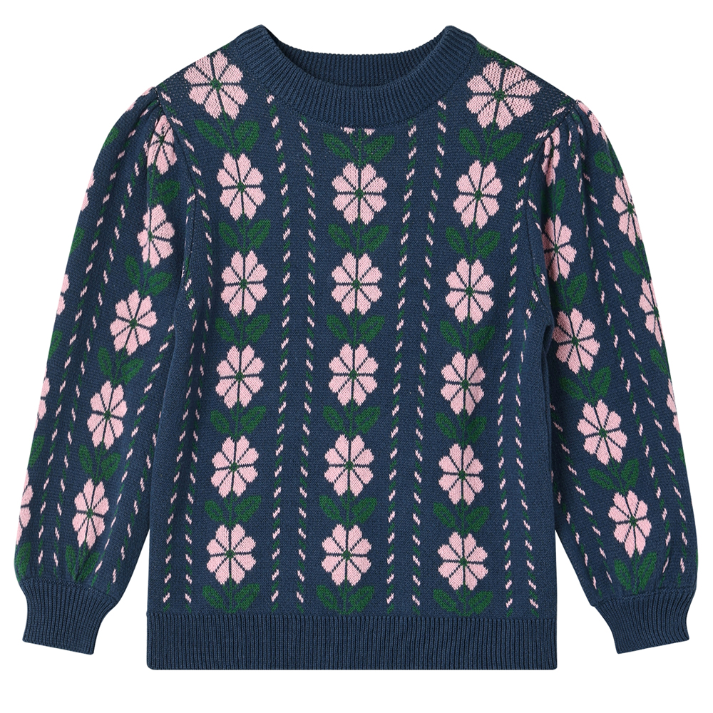 Organic Garden striktrøje (2 år/92 cm) INSIGNIA BLUE GARDEN