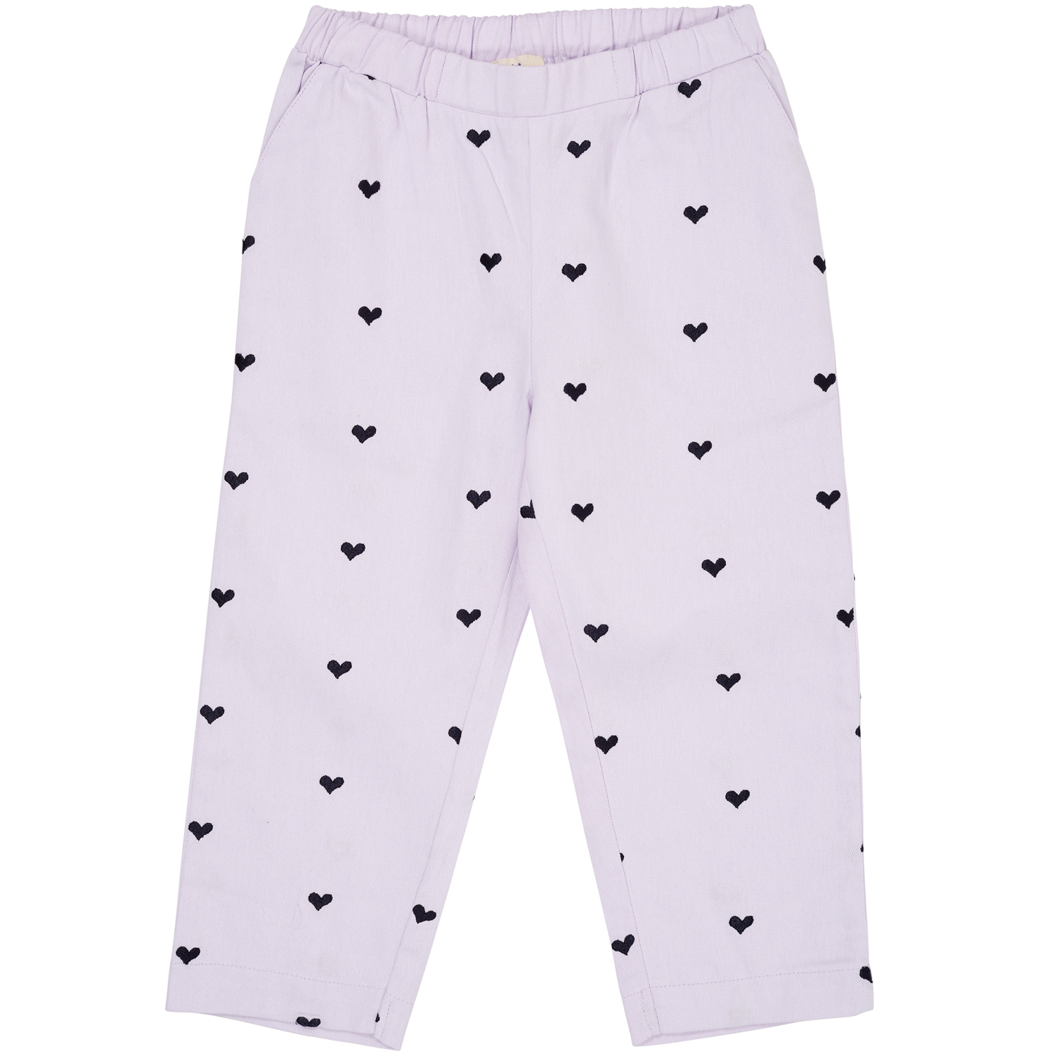 Organic Heart bukser (2 år/92 cm) LAVENDER W. NAVY HEARTS