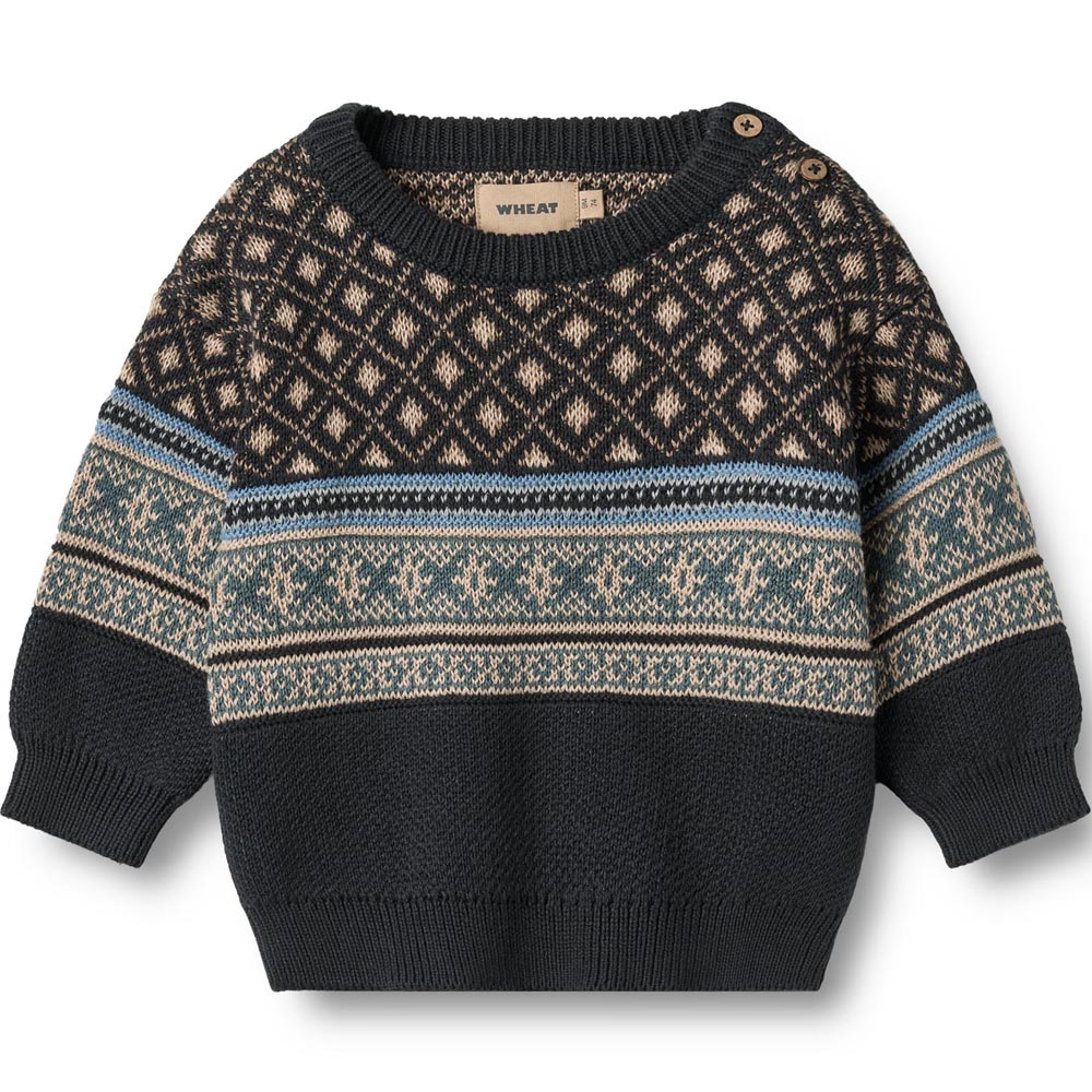 Organic Julius striktrøje (18 mdr/86 cm) – 2 knapper ved halsudskæringen 1432 navy Julius
