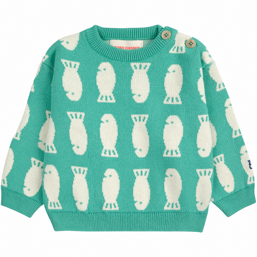 Organic Lucky Fish striktrøje (2 år/92 cm) – 2 knapper ved halsudskæringen LIGHT GREEN Lucky Fish