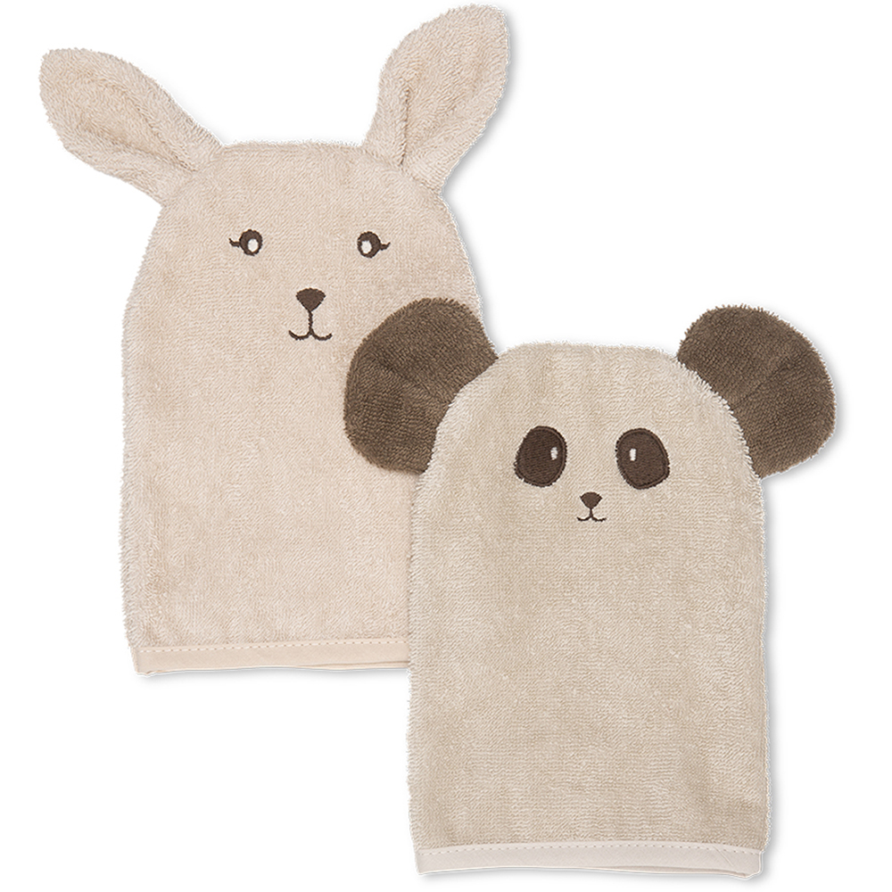 Organic Michi 2-pak vaskeklude (One size) Bunny and panda Michi