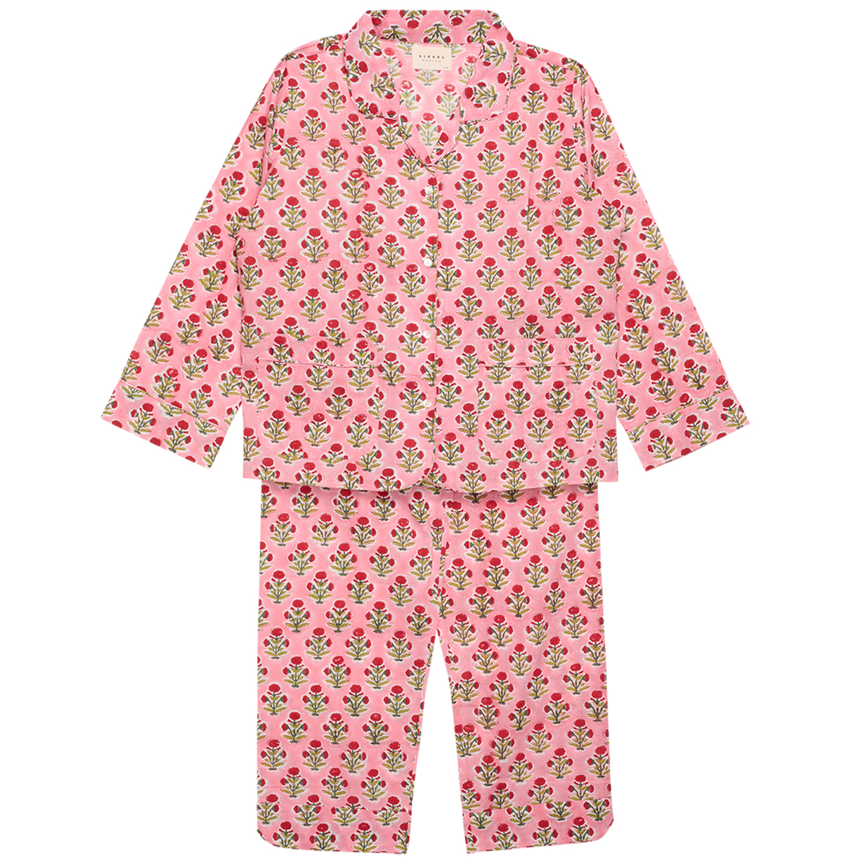 Organic Nuit nattøj (3-4 år) – Natskjorten lukkes med knapper – Sættet kommer i en matchende pose Cherry Flower Nuit