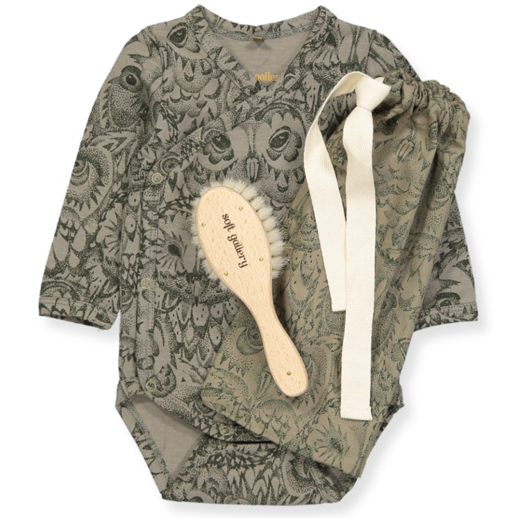 Organic Owl body og hårbørste (3 mdr/62 cm) Fint babysæt med body og hårbørste Vetiver Owl Vetiver