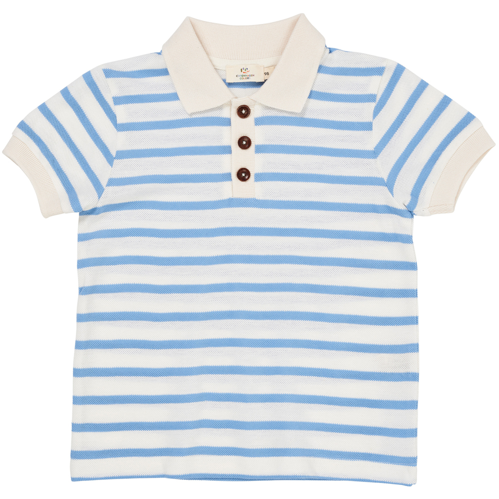 Organic pique polo t-shirt (4 år/104 cm) SKY BLUE STRIPE