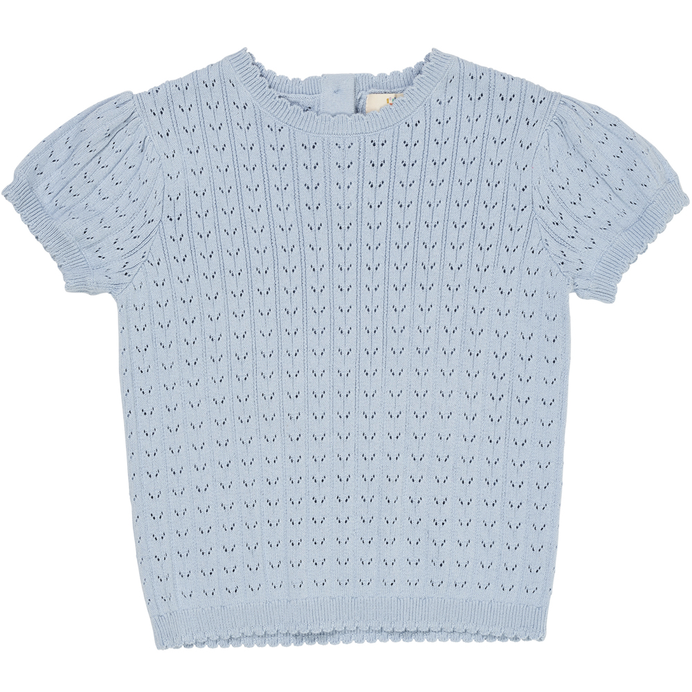 Organic pointelle t-shirt (5 år/110 cm) – Lukkes med 3 knapper ved halsudskæringen bagpå DUSTY BLUE