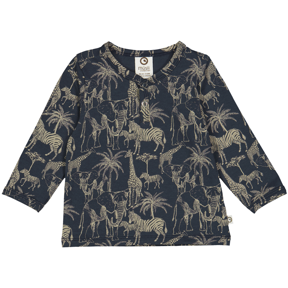 Organic Safari bluse (2 år/92 cm) – Trykknapper ved halsudskæringen Night blue/ Cashmere Safari