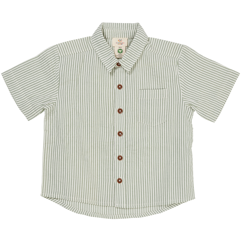 Organic skjorte (4 år/104 cm) GREEN W CREAM STRIPE