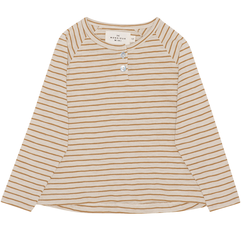 Organic stribet bluse (5-6 år) Offwhite/toffee