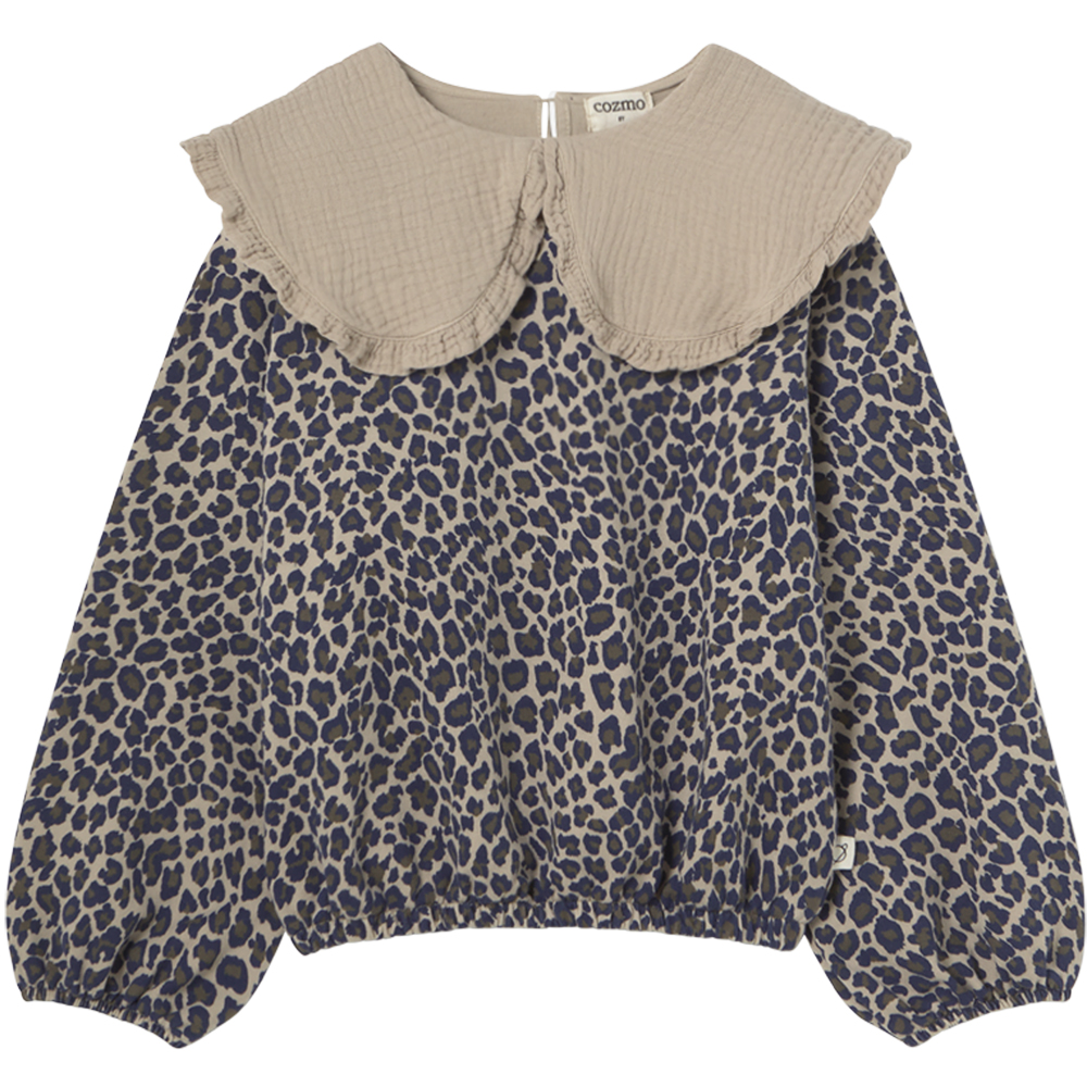 Organic sweatshirt (5 år/110 cm) – Lukkes med dråbelukning bagpå – Smuk krave med flæsedetaljer stone