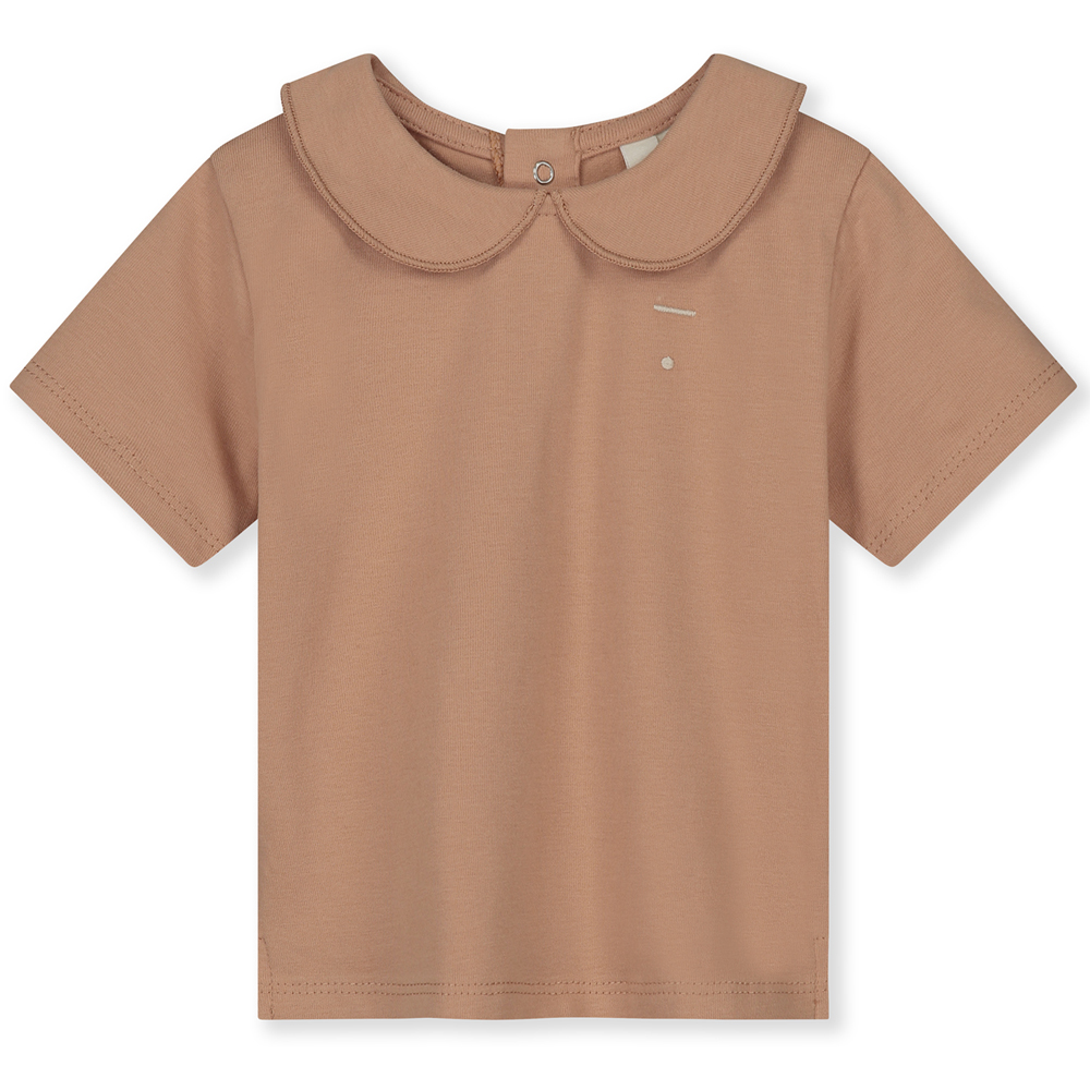 Organic t-shirt (12-18 mdr) – Lukkes med trykknapper i nakken Biscuit