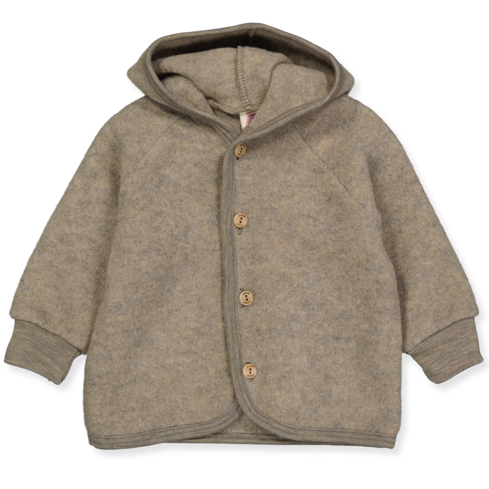 Organic uldfleece cardigan (98-104 cm) Flot og lækker cardigan i den blødeste uld, som er svedtransporterende og isolerende, så dit barn bliver holdt tørt og varmt. – Ribkant i ærmer – Lukkes med fine træknapper – Kan vaskes ved 30 grader på uldprogram –