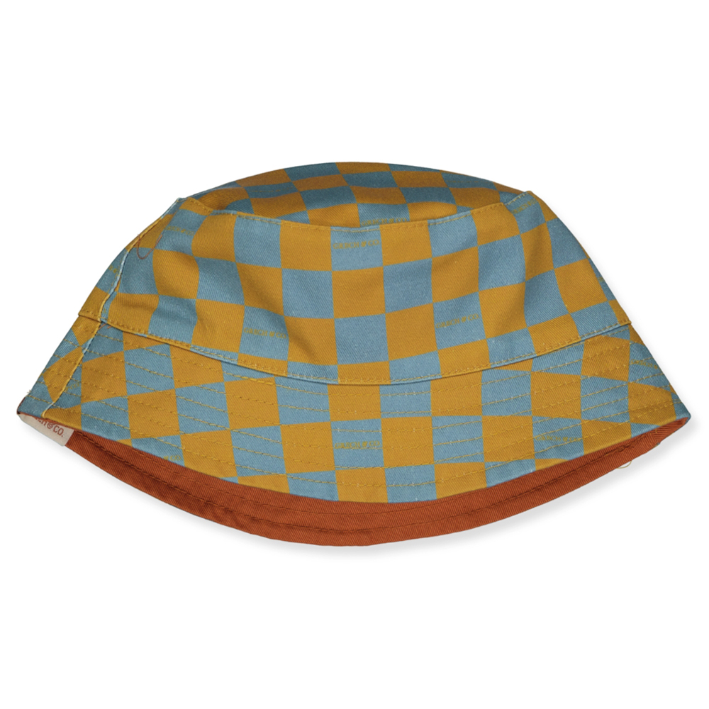 Organic vendbar bøllehat (48) Vendbar bøllehat 48cm.: 9 mdr. – 2 år 52cm.: 3 – 6 år Checks Laguna + Wheat