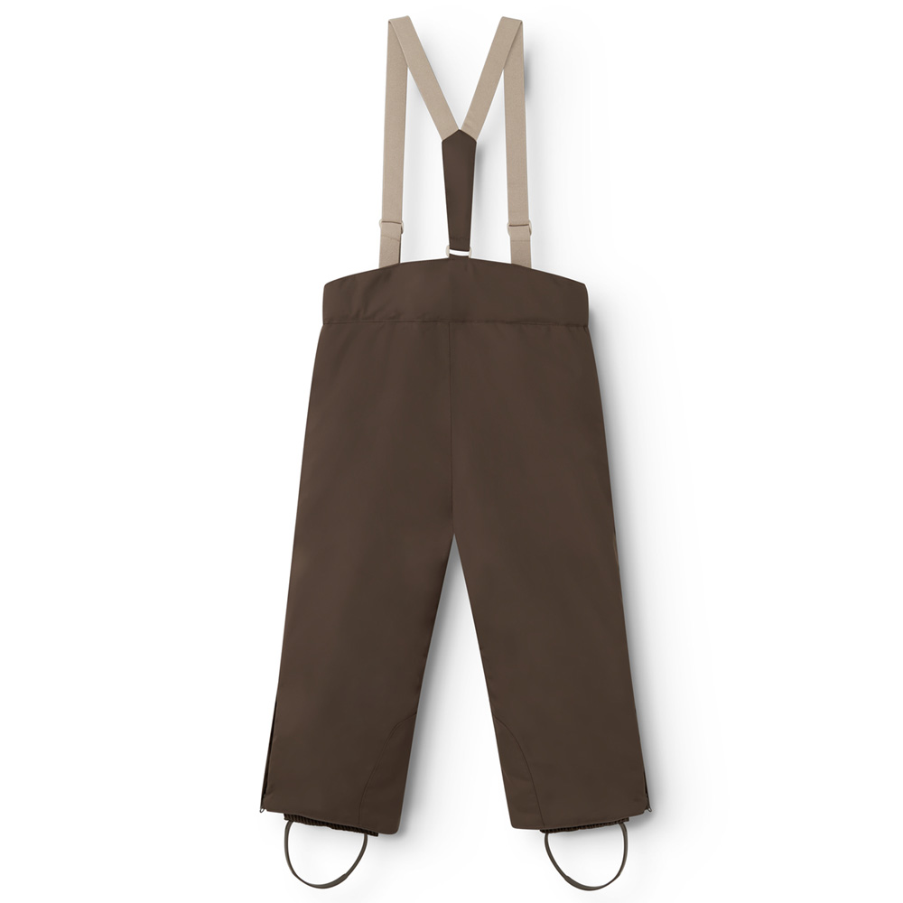 Orla overtræksbukser (3 år/98 cm) – Justerbar velcro i taljen – Justerbare elastik stropper – Vindfang med velcro, trykknap og elastik i ben – Justerbare og aftagelige fodstropper – Lynlås i bukseben – Refleks som piping Deep Choco Orla