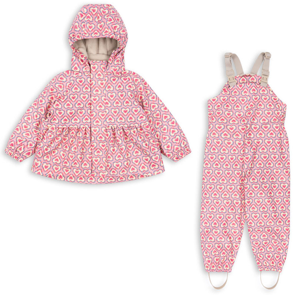 Palme regntøj med fleecefoer (2 år/92 cm) – Konges Sløjd regnjakken har en aftagelig hætte, som sidder fast med trykknapper. Hætten har en elastikkant om ansigtet. – Ærmerne har elastikkanter der holder vind og kulde ude, og i taljen er der en syning der