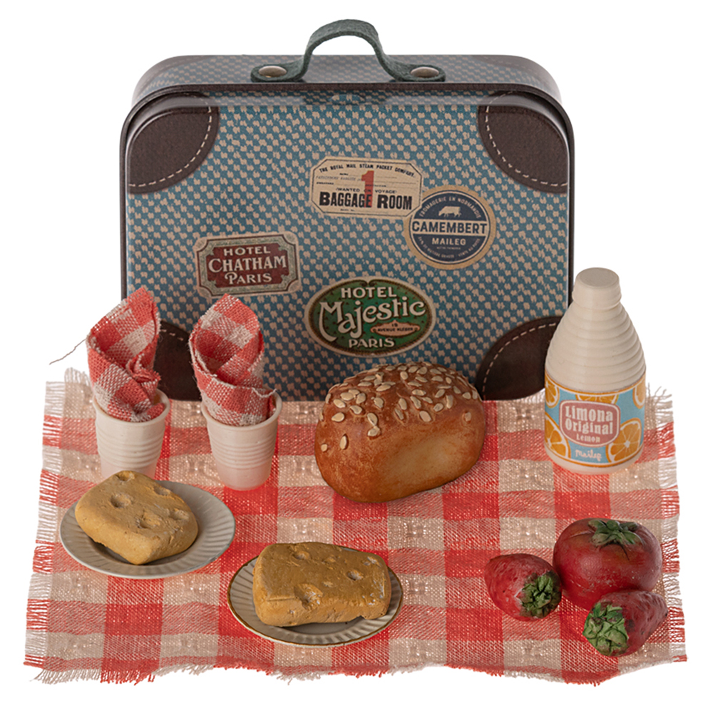 Picnic sæt til mus (One size) Flot picnic sæt til mus. Sættet kommer i en kuffert og indeholder både mad og service, som alt sammen er håndlavet – derfor kan forekomme variationer i malingen. 11-4301-00
