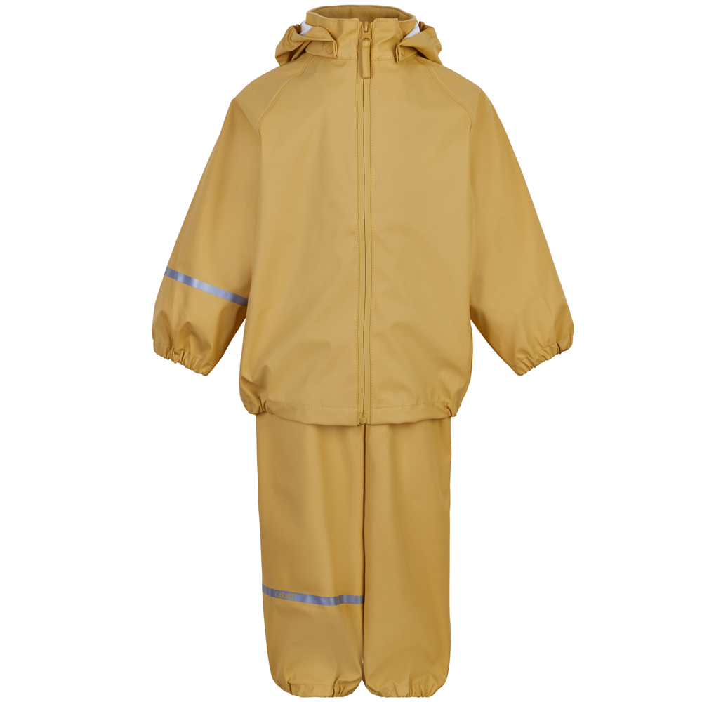 Rattan recycled regntøj (130 cm) – Polyurethane coating – Vindtæt – Refleksdetaljer – Justerbare seler i bukser til og med størrelse 70-100 – Justerbar elastik i bukser fra størrelse 110 Rattan