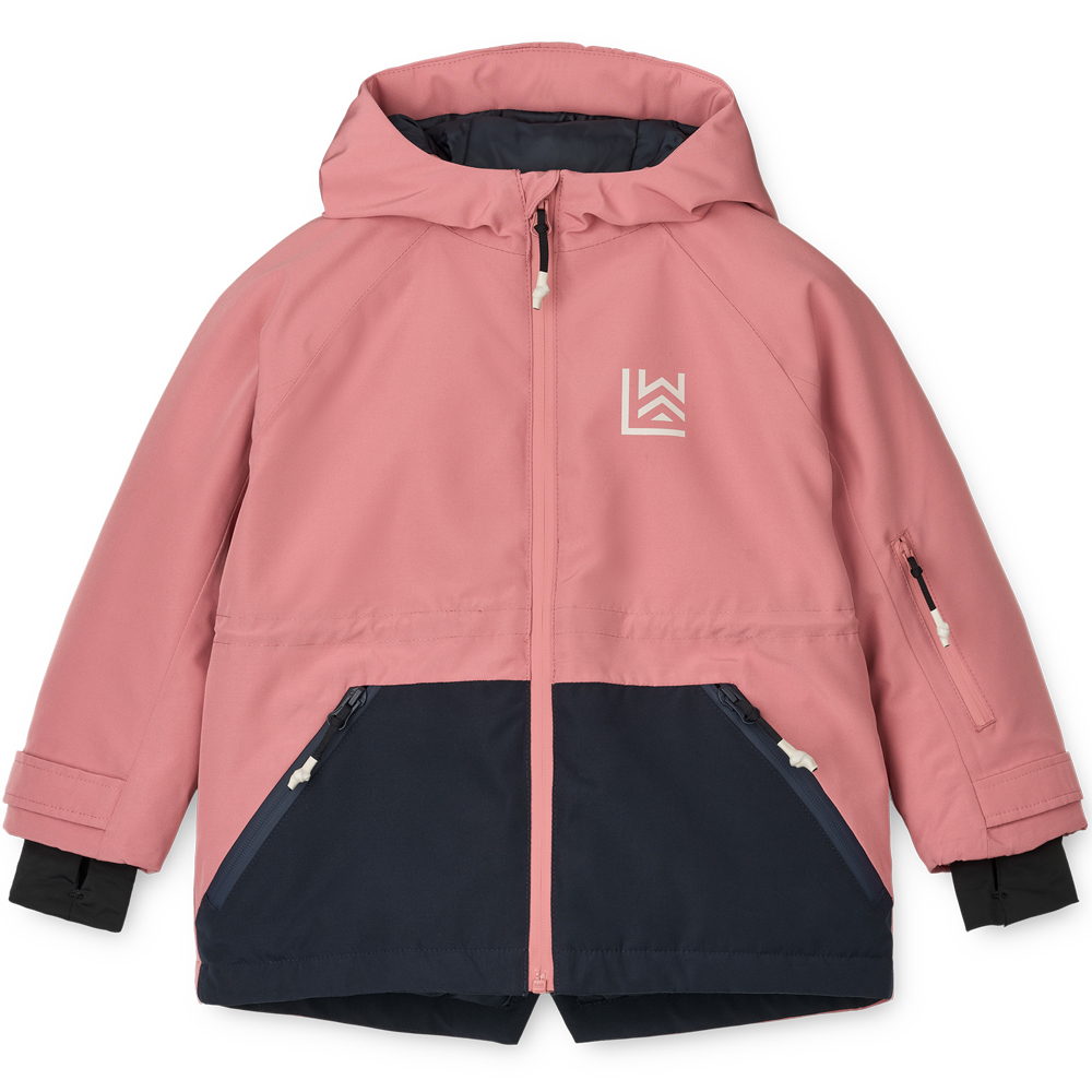 Recycled Kalle vinterjakke (6 år/116 cm) – Vindfang i ærmer med hul til tommeltot Dusty rose / navy Kalle