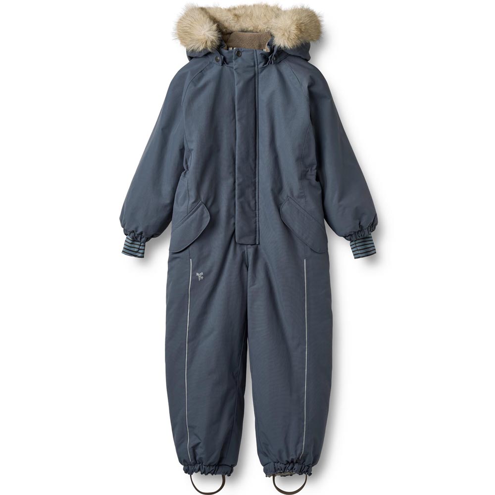 Recycled Moe flyverdragt m. pels (4 år/104 cm) – Aftagelig hætte med imiteret pelskant – Blød fleece indvendig i hætten – Skjult lynlås og stolpe med trykknapper – Elastik ved ben og håndled – Aftagelig fodstropper 1292 greyblue Moe