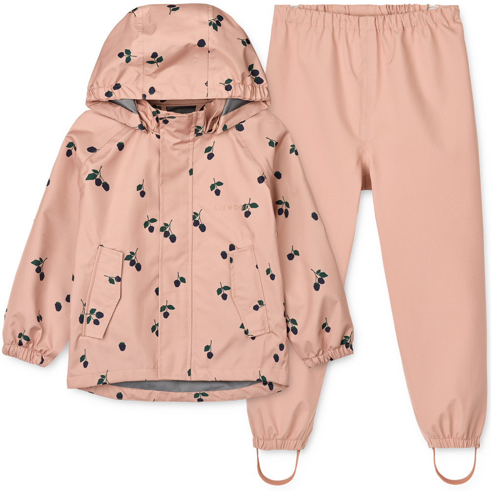 Recycled Pedia regntøjssæt (4 år/104 cm) – Praktisk og legende regnsæt med reflekser – Regnbukser med elastik i taljen og knapper til justering – Justerbare silikonefodstropper Berry / Pale Tuscany Pedia