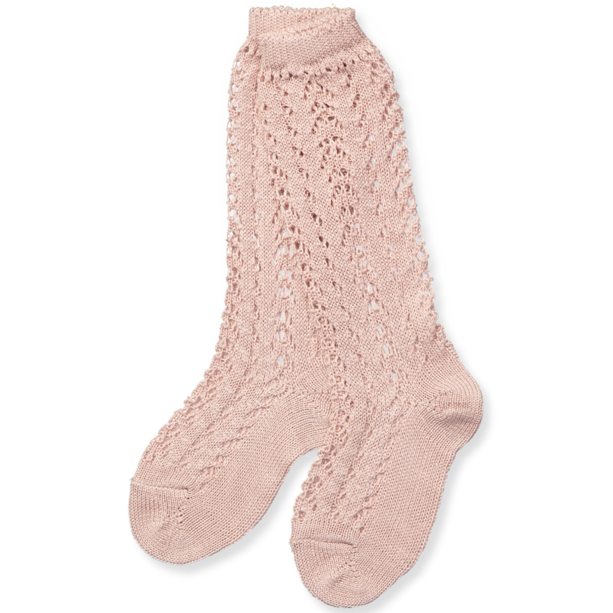 Rosa knæstrømper med hulmønster (3-6 mdr (00)) Rosa empolvado PERLE OPENWORK KNEE HIGH SOCKS