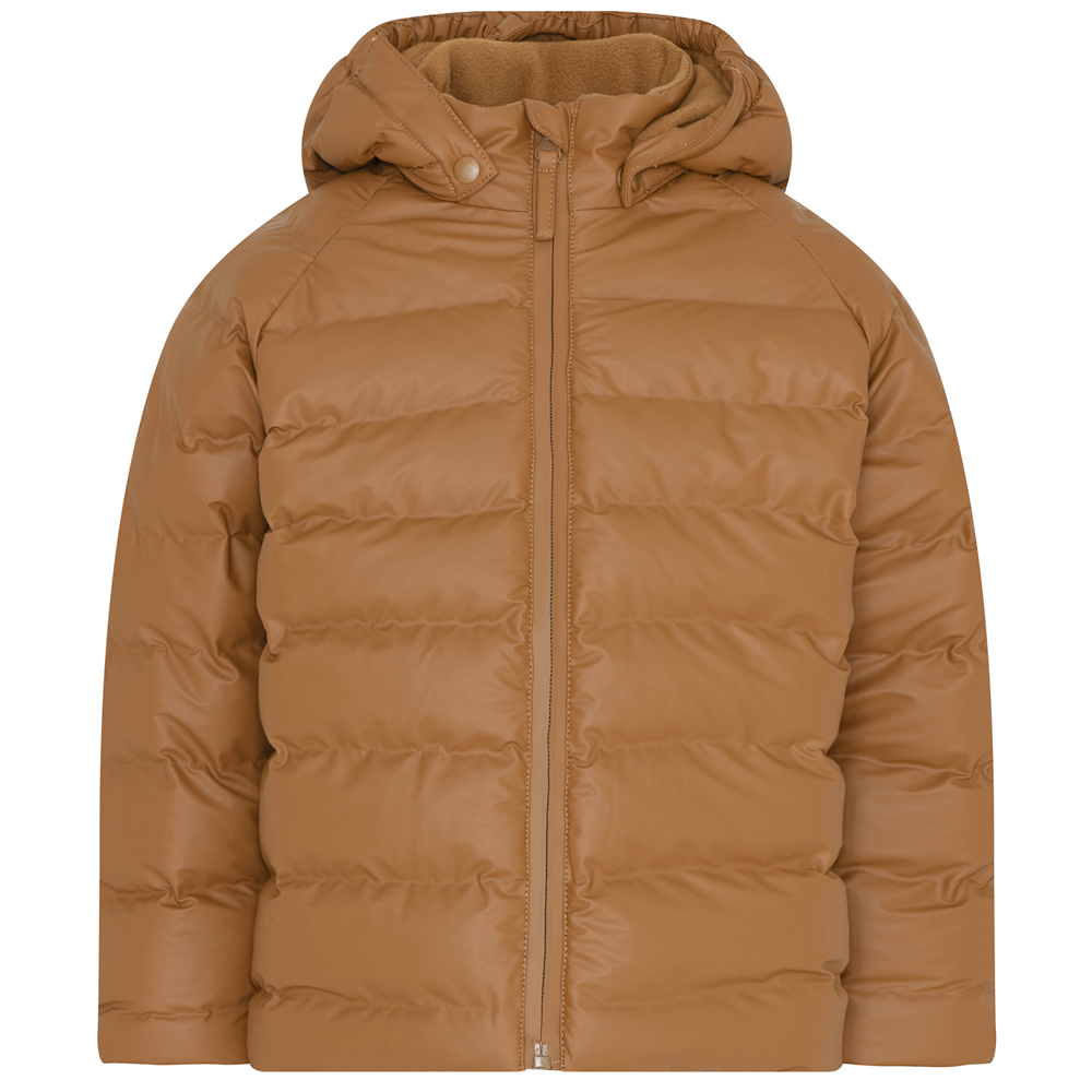 Rubber vinterjakke (90 cm) – Polyurethane coating, så den kan tåle mange byger, lynlåsen er også coatet – Fleecefoer i hætten – Genanvendt polyester til isolering Rubber