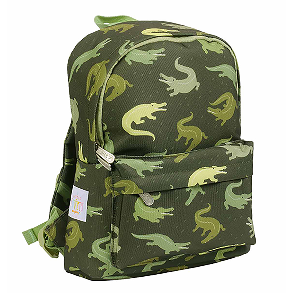 Rygsæk – Crocodiles (One size) Perfekt rygsæk til barnet der skal på tur. Stort og lille lynlåsrum. Rygsækken har vatterede justerbare skulderstropper, en stor inderlomme og en ydre lomme som lukkes med lynlås. Rygsækken har en strop foroven så man kan hæ