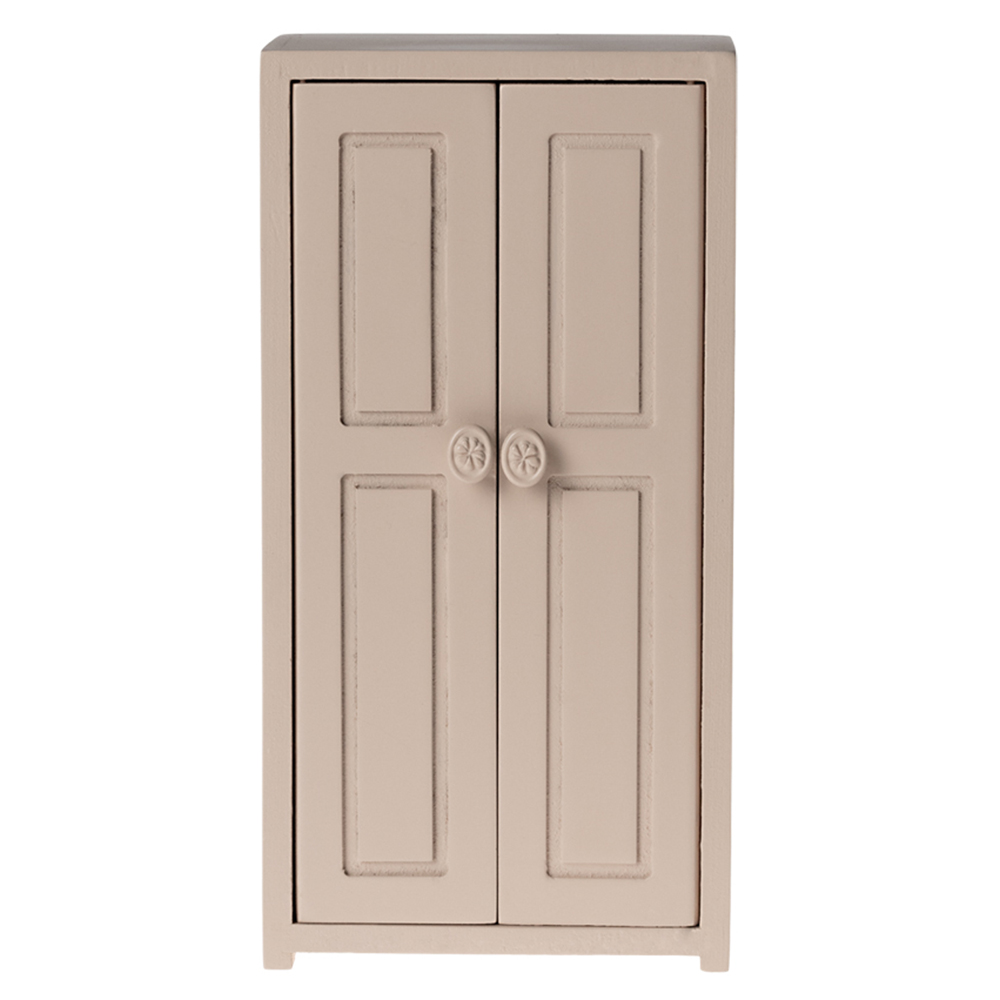 Skab til mus (One size) Smukt gaderobeskab til mus. Inde i skabet hænger 3 fine bøjler. Lyserød