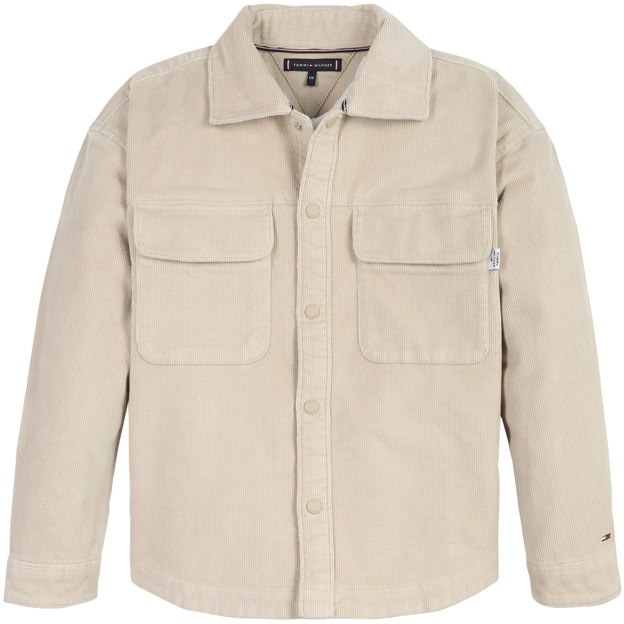 Skjorte (10 år/140 cm) – Overshirt – lukkes med trykknapper – brystlomme BEIGE