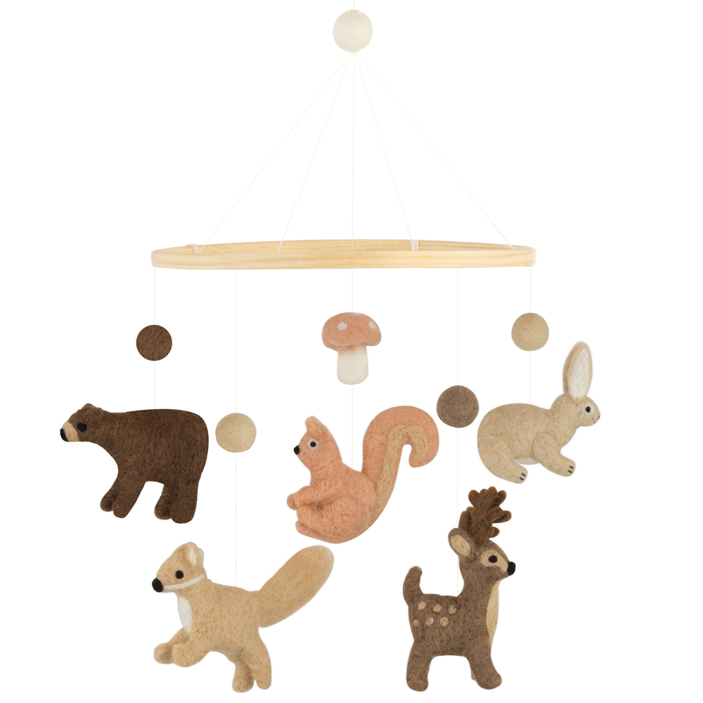Skov aktivitetslegetøj (One size) Forest babymobil med søde, farverige dyr hjælper din baby med at slappe af og falde i søvn. Den er lavet af blød, holdbar New Zealand-filt og nem at hænge op i loftet eller over vuggen. En fin og tryg detalje til ethvert